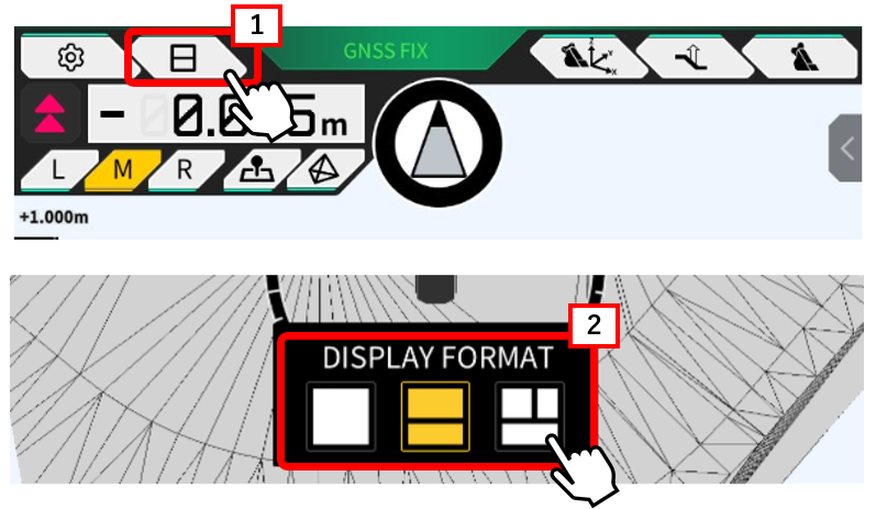 1. Tap 【"1"the menu】, then touch 【"2"the view switching button】 to change the layout.