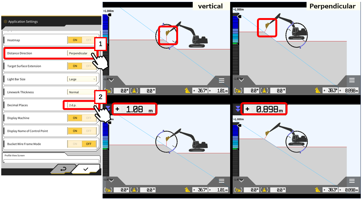 2) Tap the 【"1"Distance Direction】, and select "Vertical" or "Perpendicular".
