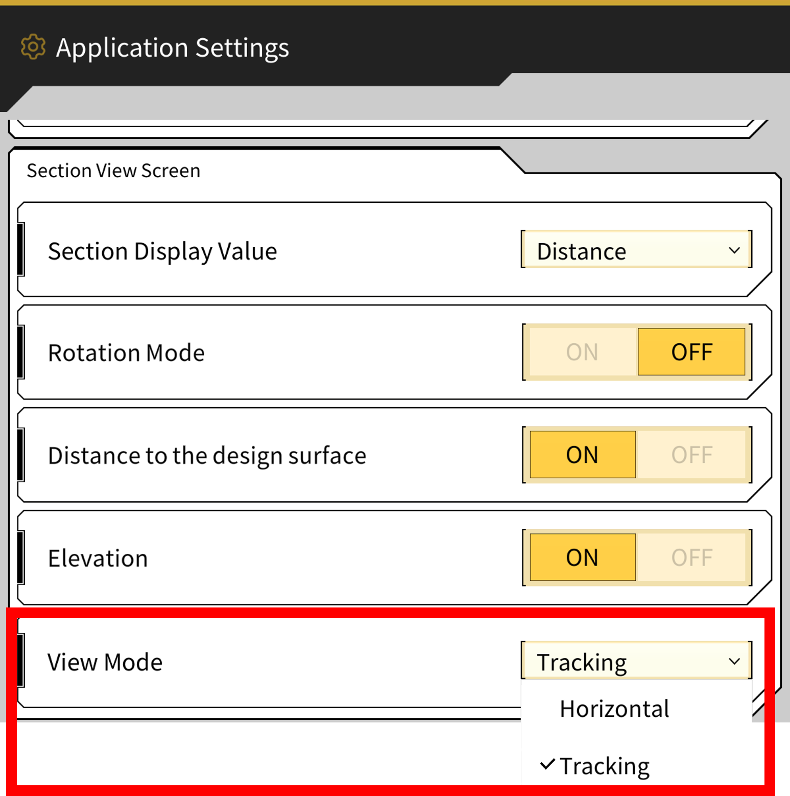 How to Switch the Setting. Menu → Guidance Settings → Application Settings → View Mode (within the Section View Screen tab) |