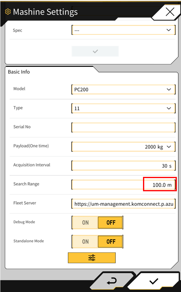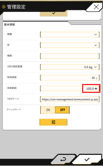 - Réglez la plage de recherche sur 0m et sélectionnez la vérification pour terminer le réglage.