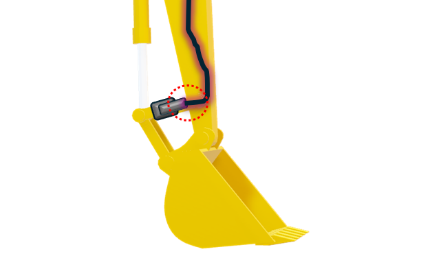 - Débranchez le connecteur relié au centre IMU du godet et vérifiez s'il est correctement branché. Si l'erreur persiste ou se produit fréquemment, il se peut que le capteur doive être remplacé.