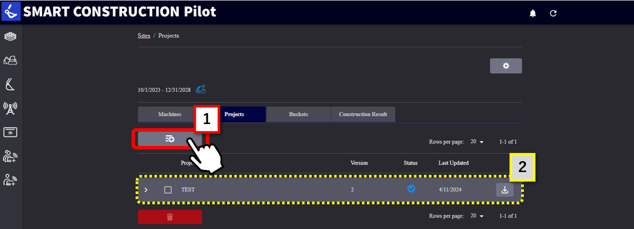 1. Importare i dati di progetto, ecc. da utilizzare per la costruzione in【“1” progetto】 nelle informazioni del cantiere e creare 【“2” dati di progetto】 in anticipo