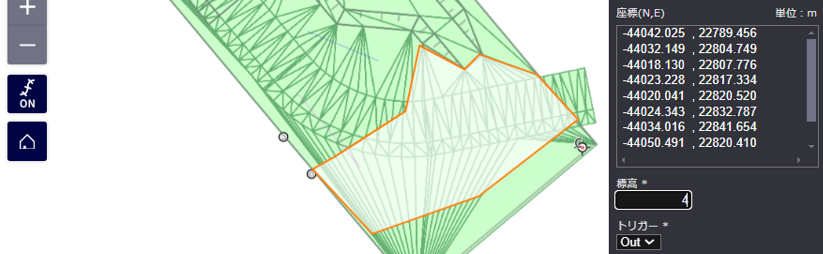 4.描画後、アラートを設置する標高値(m単位)を入力します。3Dデータの場合はフェンスの高さを入力します